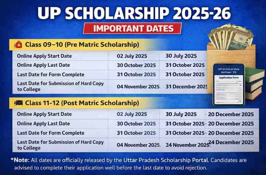 📅 UP Scholarship 2025–26 Important Dates (Updated)